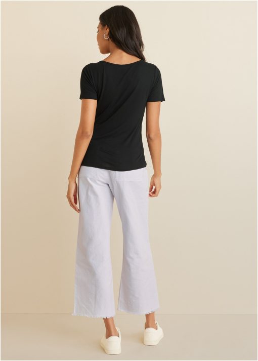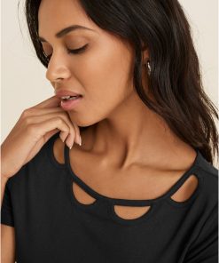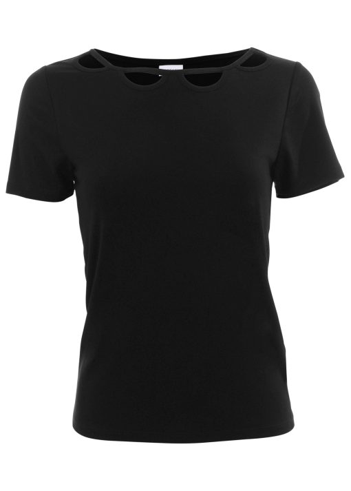 SKU: j244002-bk-cut-out-top-black-28782607 Category: Shirts & Sweaters Tags: brand:VENUS, category:Clothing, color-code:BK, color-description:Black, color-family:BLACK, customer-rating:4 stars & up, fabric-type:Solids, final sale, inventory-VS25O, limited variant availability, markdown, material-composition:100% viscose, md30+, out of stock, publication-list:25Q1_JAN_PRE-SPRING, size-chart:clothing, style-number:J244002, style:Short Sleeve, type:Shirts & Sweaters