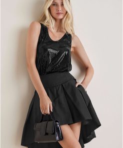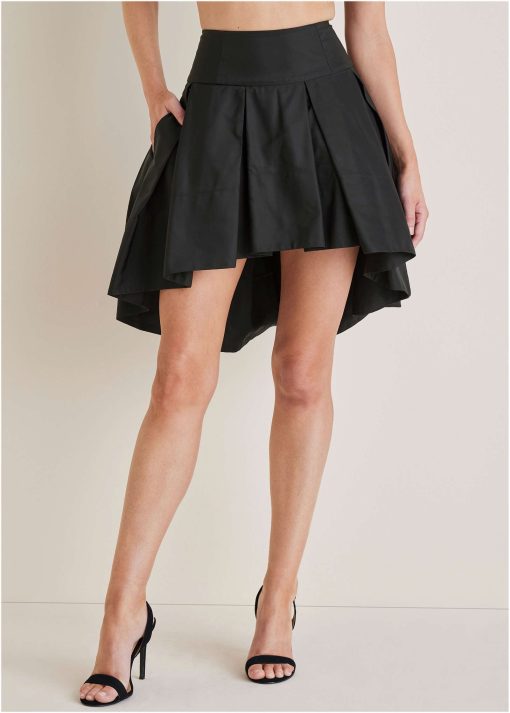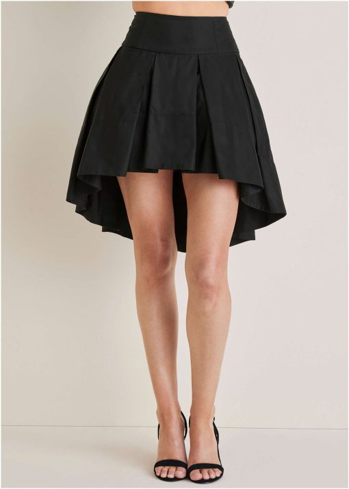 Can we get a round of applause for this high-low mini skirt? Really. it’s just. that. good! From the dramatic bubble shape to the leg-baring hemline. we’re completely obsessed (and you will be too). While box pleats typically skew polished. this time they have a sexy edge that’s perfect for nighttime. Just add sparkles plus strappy heels and get ready to steal the show.* Available in plus sizes* Invisible back zipper closure* High-low hemline* Polyester. Imported