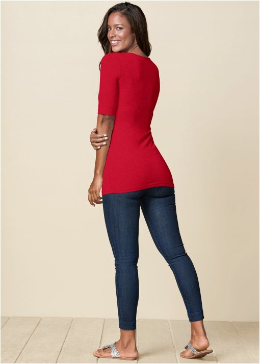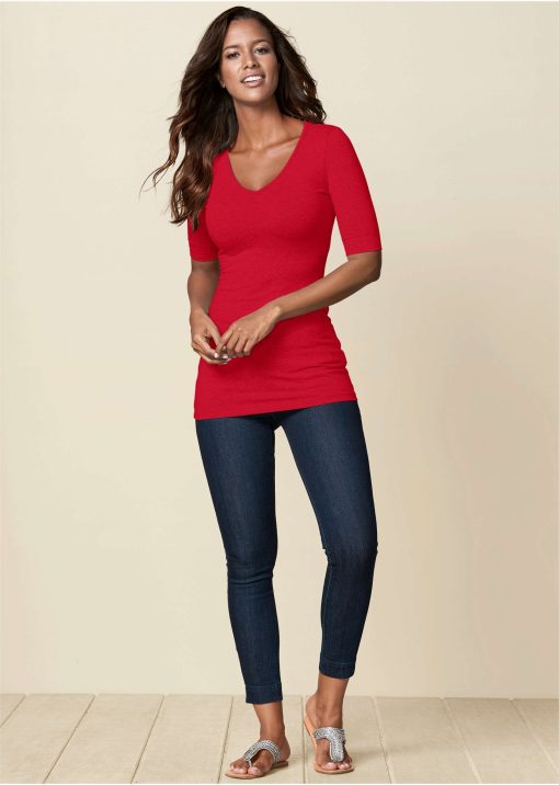 Tags: brand:VENUS, category:Clothing, color-code:CHRD, color-description:Red, color-family:RED, customer-rating:4 stars & up, fabric-class:Solids, fabric-type:Solids, final sale, inventory-VS24P, limited variant availability, lining-type:Unlined, material-composition:95% cotton (CmiA)/5% spandex, occasions:Casual, out of stock, outlet, publication-list:A0713|, size-chart:clothing, sleeve-length-type:Short, style-number:Z9008, style:Short Sleeve, type:Shirts & Sweaters