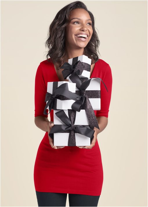 This hip length tee features a deep V-neck edged in ribbing that holds its shape. The fitted elbow-length sleeves are also ribbed. keeping them snug while on the go. The form-fitting style and long length smooth your torso. making this best-seller a versatile basic for every wardrobe!* Sizes: XS (2). S (4-6). M (8-10). L (12-14). XL (16)* Plus sizes: 1X (18-20). 2X (22-24). 3X (26-28)* V-neck* LTHG: Cotton/rayon/spandex. Imported* All Other Colors: Cotton/spandex. Imported
