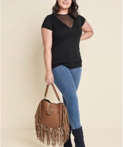 Be the first to review “Mesh Detail V-Neck Top – Black” Cancel reply