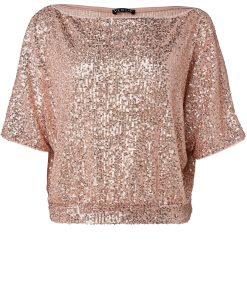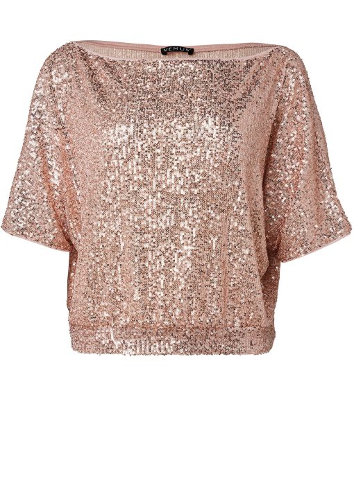 Tags: brand:VENUS, category:Clothing, color-code:RSGL, color-description:Rose Gold, color-family:METALLIC, color-family:PINK, customer-rating:4 stars & up, final sale, inventory-VS21P, limited variant availability, material-composition:95% polyester/5% elastane, occasions:Night Out, out of stock, outlet, publication-list:A1013|, size-chart:clothing, sleeve-length-type:Short, style-number:Z214715, style:Short Sleeve, type:Shirts & Sweaters