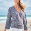 Make your everyday look a little more luxurious with this slightly sexy. definitely chic silky blouse. Collared V-neck and button cuffs give it polished appeal. with a wrapped front that finishes with a knot at the hip for a freshened-up edge. Let a cami or bralette peek out to show your daring side.* Available in plus size* Relaxed fit* Fabric has no stretch* Surplice style deep V-neck* Asymmetrical knot detail at front* Poly. Imported