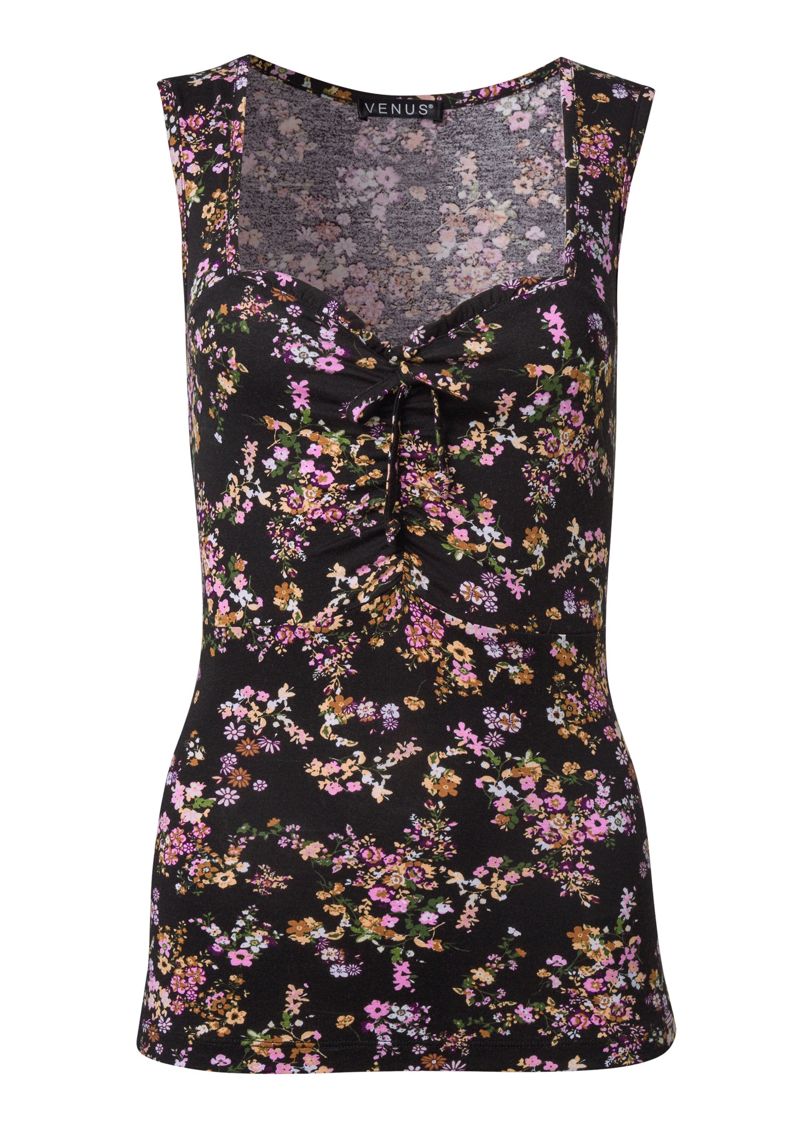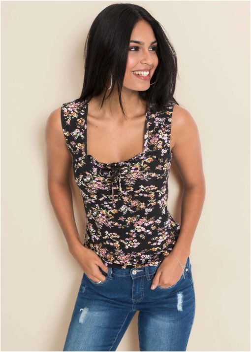 SKU: j224218-bkmu-tie-front-floral-top-black-multi-28782593 Category: Shirts & Sweaters Tags: brand:VENUS, category:Clothing, color-code:BKMU, color-description:Black Multi, color-family:BLACK, color-family:MULTI, customer-rating:4 stars & up, final sale, inventory-VS25O, limited variant availability, lining-type:Unlined, markdown, material-composition:95% viscose/5% elastane, md30+, occasions:Casual, out of stock, publication-list:25Q1_JAN_PRE-SPRING, size-chart:clothing, size-type:plus size, sleeve-length-type:Sleeveless, style-number:J224218, style:Sleeveless, type:Shirts & Sweaters